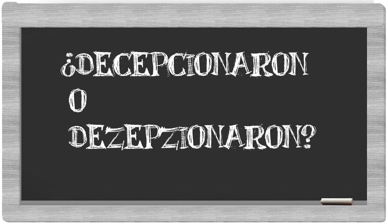 Cuando se presenta la comparación entre decepcionaron y dezepzionaron, es importante que no vaciles, puesto que únicamente decepcionaron se encuentra correctamente redactada. Por otro lado, dezepzionaron ni siquiera figura en el Diccionario de la Real Academia Española.