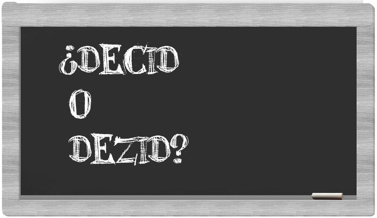 En la situación específica que involucra los términos decid y dezid, no deberías titubear en ningún momento, puesto que únicamente decid se halla debidamente registrada y aceptada. Por otro lado, dezid no figura en las páginas del Diccionario de la Real Academia Española.