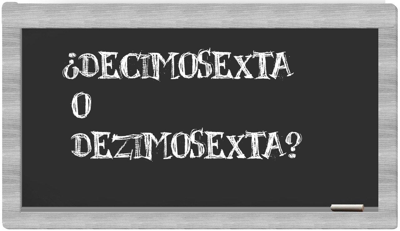 Cuando se trate de la distinción entre decimosexta y dezimosexta, no caben vacilaciones, ya que solo decimosexta se presenta como la opción adecuada; por el contrario, dezimosexta no se encuentra registrada en el Diccionario de la Real Academia Española.