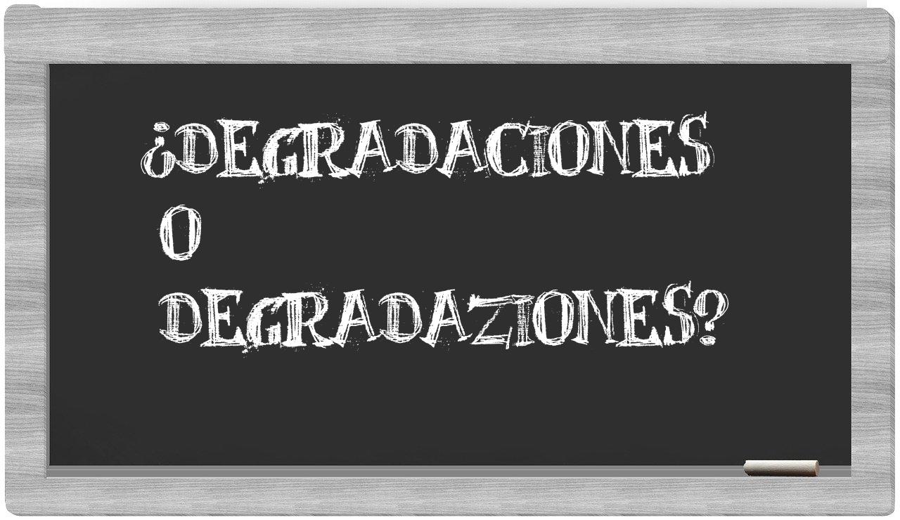 Cuando se trata de las palabras degradaciones y degradaziones, no hay motivo para titubear, puesto que únicamente degradaciones se encuentra debidamente reflejada en el Diccionario de la Real Academia Española, mientras que degradaziones carece de reconocimiento oficial.