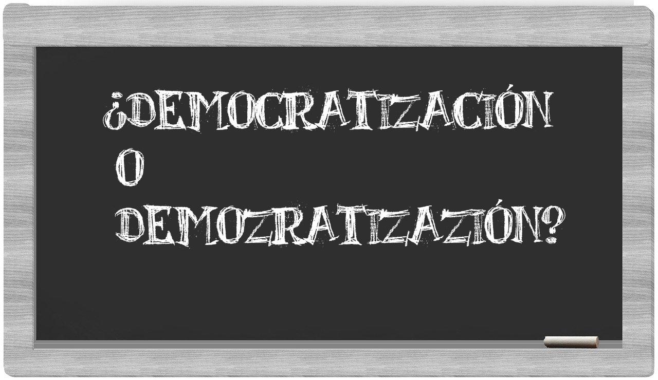 Cuando te encuentres ante la elección entre democratización y demozratizazión, no vaciles ni un instante, pues es indiscutible que democratización es la única que se encuentra debidamente registrada en el Diccionario de la Real Academia de la Lengua, mientras que demozratizazión carece de validez lingüística.
