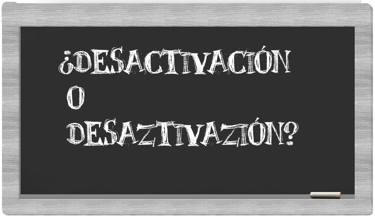 Cuando te enfrentes a la elección entre desactivación y desaztivazión, es fundamental que no titubees, puesto que solo desactivación es la opción adecuada. Recuerda que desaztivazión no forma parte de las palabras reconocidas por el Diccionario de la Real Academia de la Lengua.