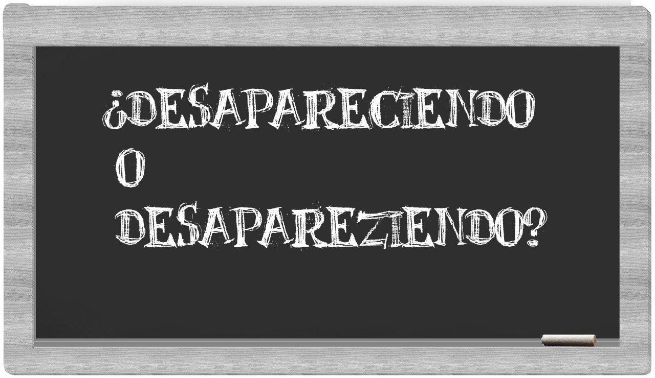 Referente a la confusión que puede surgir entre desapareciendo y desapareziendo, es crucial que no vaciles, pues solo desapareciendo se encuentra debidamente registrada y es la forma apropiada. Por el contrario, desapareziendo no figura en el léxico de la Real Academia Española.