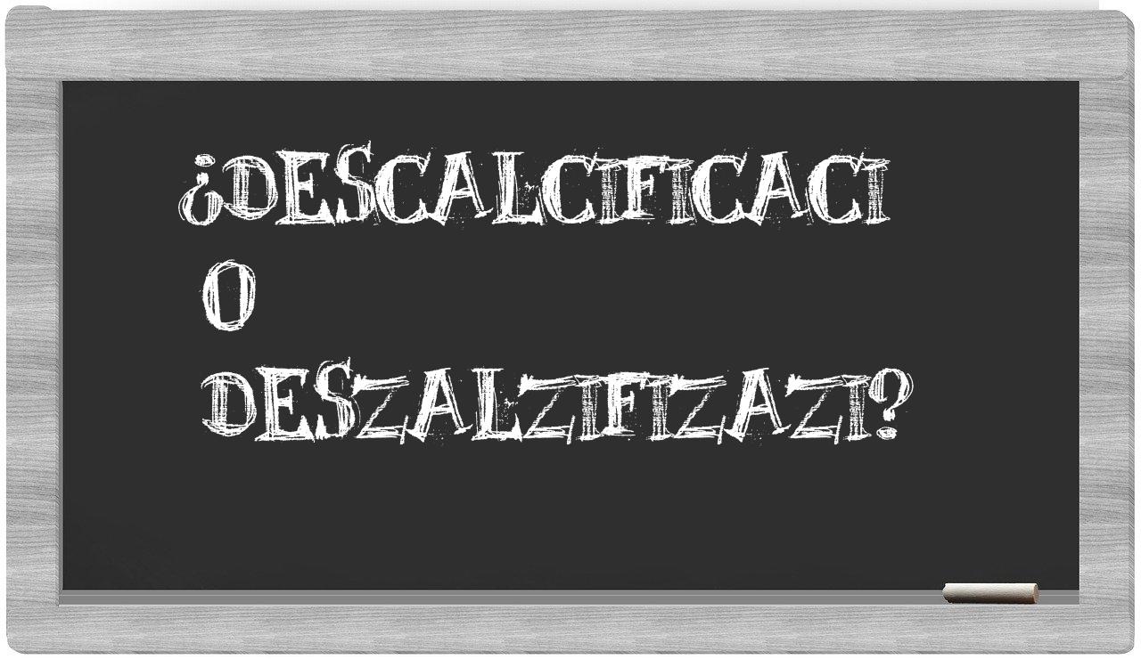 Cuando se trate de decidir entre descalcificaci y deszalzifizazi, la elección siempre será clara, pues únicamente descalcificaci se encuentra registrado con corrección en el Diccionario de la Real Academia de la Lengua, mientras que deszalzifizazi carece de fundamento en su léxico.
