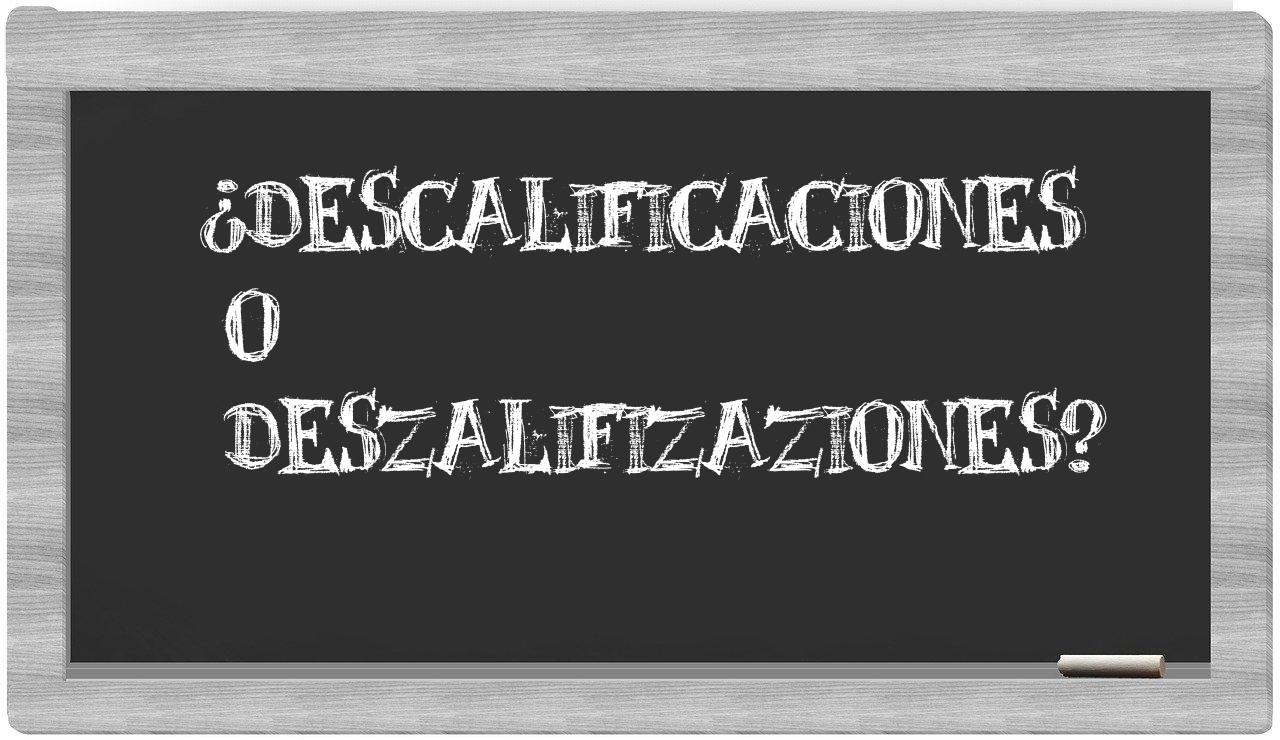 En la situación particular que involucra los términos descalificaciones y deszalifizaziones, la elección es clara y no deja espacio para la incertidumbre, puesto que únicamente descalificaciones es la forma adecuada; por otro lado, deszalifizaziones no se encuentra registrada en el Diccionario de la Real Academia Española.