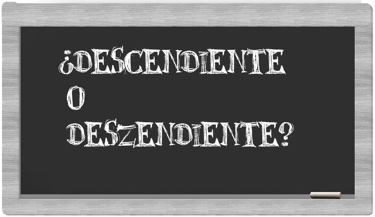 Cuando se trata de la relación entre descendiente y deszendiente, la incertidumbre no tiene cabida, porque únicamente descendiente es la que se encuentra debidamente registrada en el Diccionario de la Real Academia Española, mientras que deszendiente carece de reconocimiento oficial.
