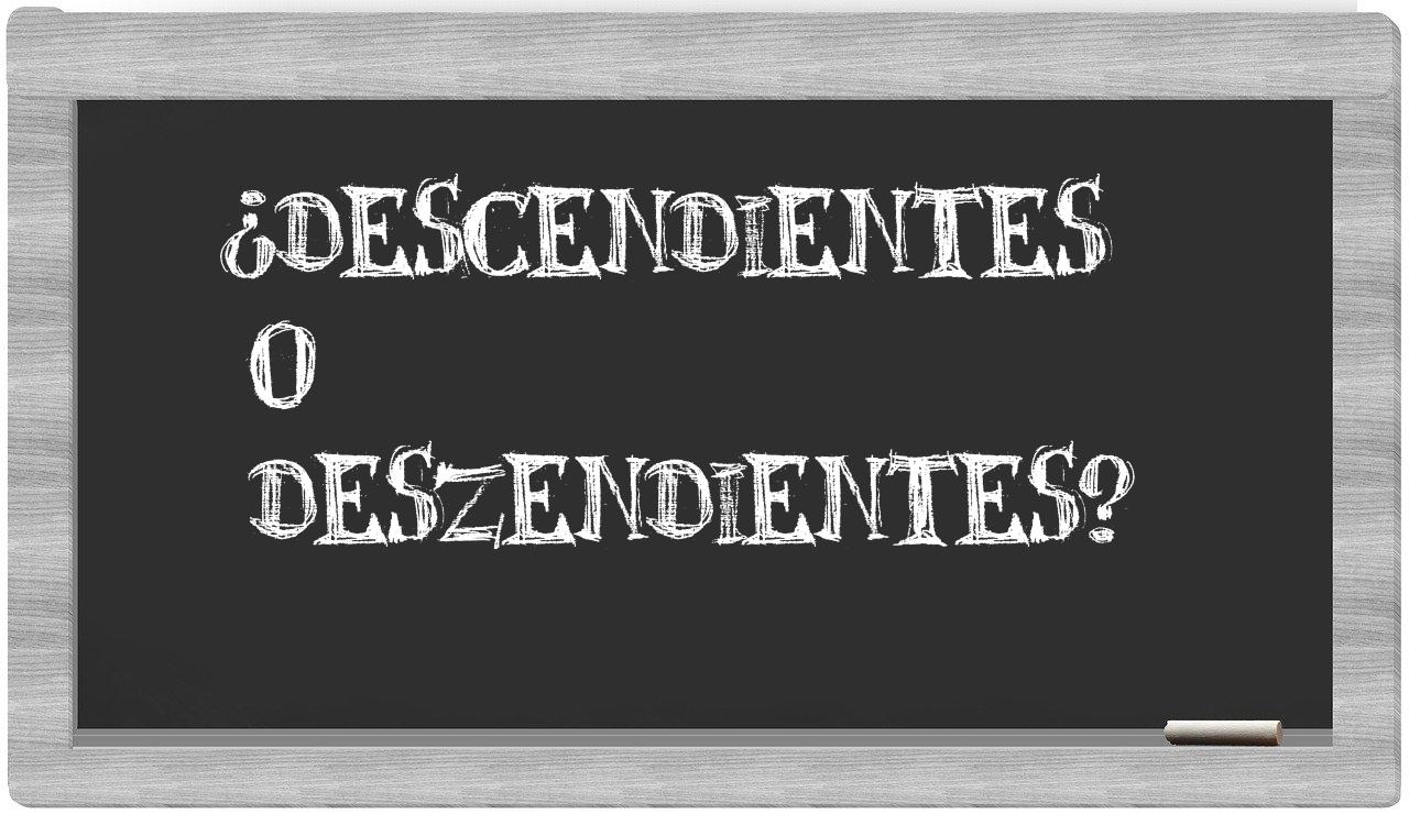 La mezcla de descendientes y deszendientes ocurre mayormente por la cercanía en su pronunciación. En la mayoría de los acentos del español, estas palabras se oyen casi idénticas, lo que puede inducir a creer erróneamente que su escritura es la misma. No obstante, la forma correcta de cada una se determina a partir de su etimología y las normas particulares de la ortografía en español.
