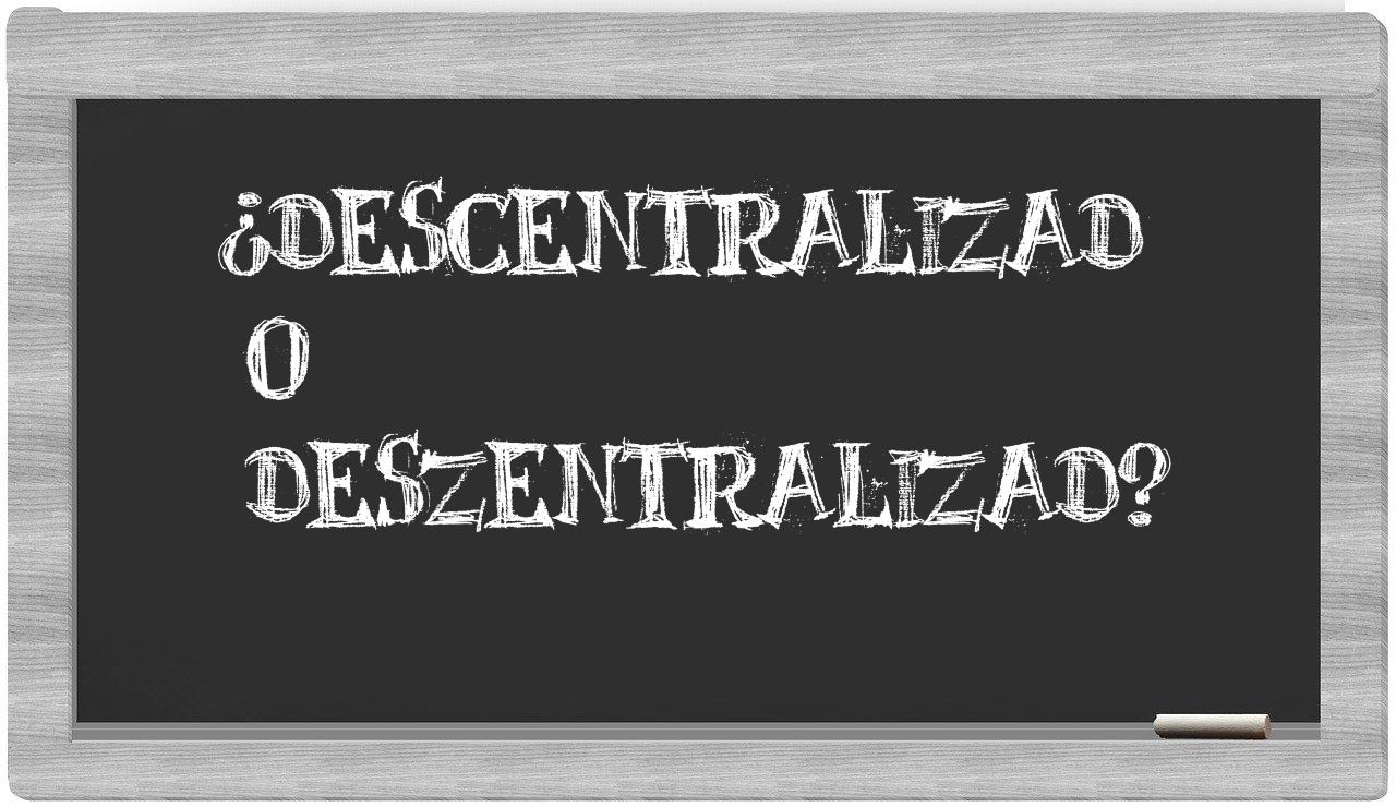 En la situación específica que involucra los términos descentralizad y deszentralizad, no hay motivo para titubear, puesto que únicamente descentralizad se encuentra debidamente redactada. Por otro lado, deszentralizad no figura en el repertorio de la Real Academia Española.