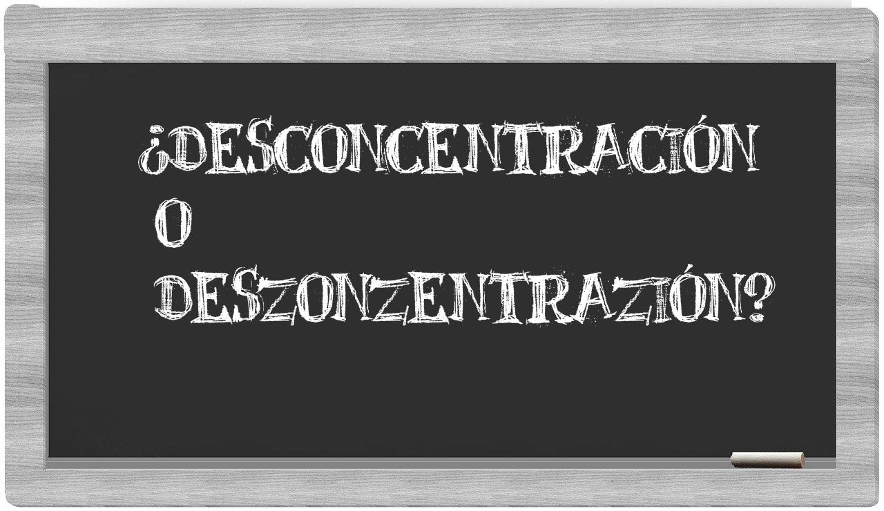 Cuando te enfrentes a la disyuntiva entre desconcentración y deszonzentrazión, no permitas que la incertidumbre te abrume, porque únicamente desconcentración es la forma adecuada. De hecho, deszonzentrazión no se encuentra registrada en el Diccionario de la Real Academia de la Lengua.