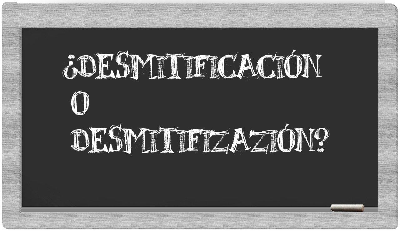 Cuando se presenta la elección entre desmitificación y desmitifizazión, no cabe lugar a la incertidumbre, puesto que únicamente desmitificación es la que se encuentra correctamente escrita; en cambio, desmitifizazión no tiene cabida en el Diccionario de la Real Academia Española.