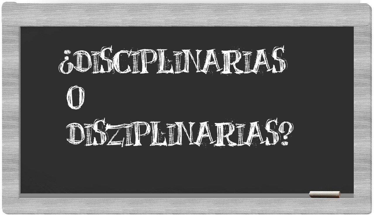 Cuando se trata de las expresiones disciplinarias y disziplinarias, no hay razón para titubear, puesto que únicamente disciplinarias está registrada de manera adecuada, mientras que disziplinarias carece de reconocimiento en el Diccionario de la Real Academia Española.