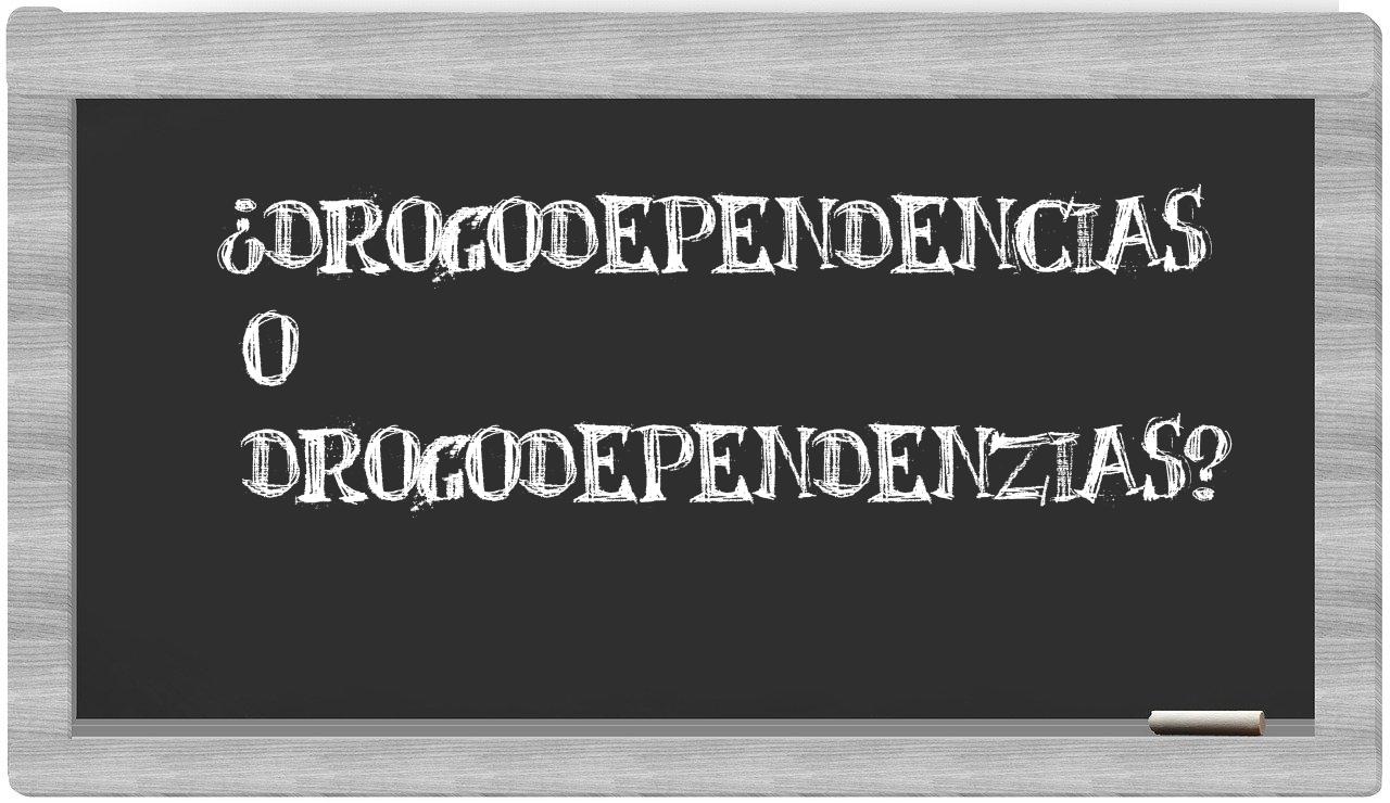 En la situación particular que involucra a drogodependencias y drogodependenzias, no deberías tener ningún titubeo, dado que únicamente drogodependencias se encuentra en la forma adecuada. Por otro lado, drogodependenzias no figura en el léxico de la Real Academia Española.