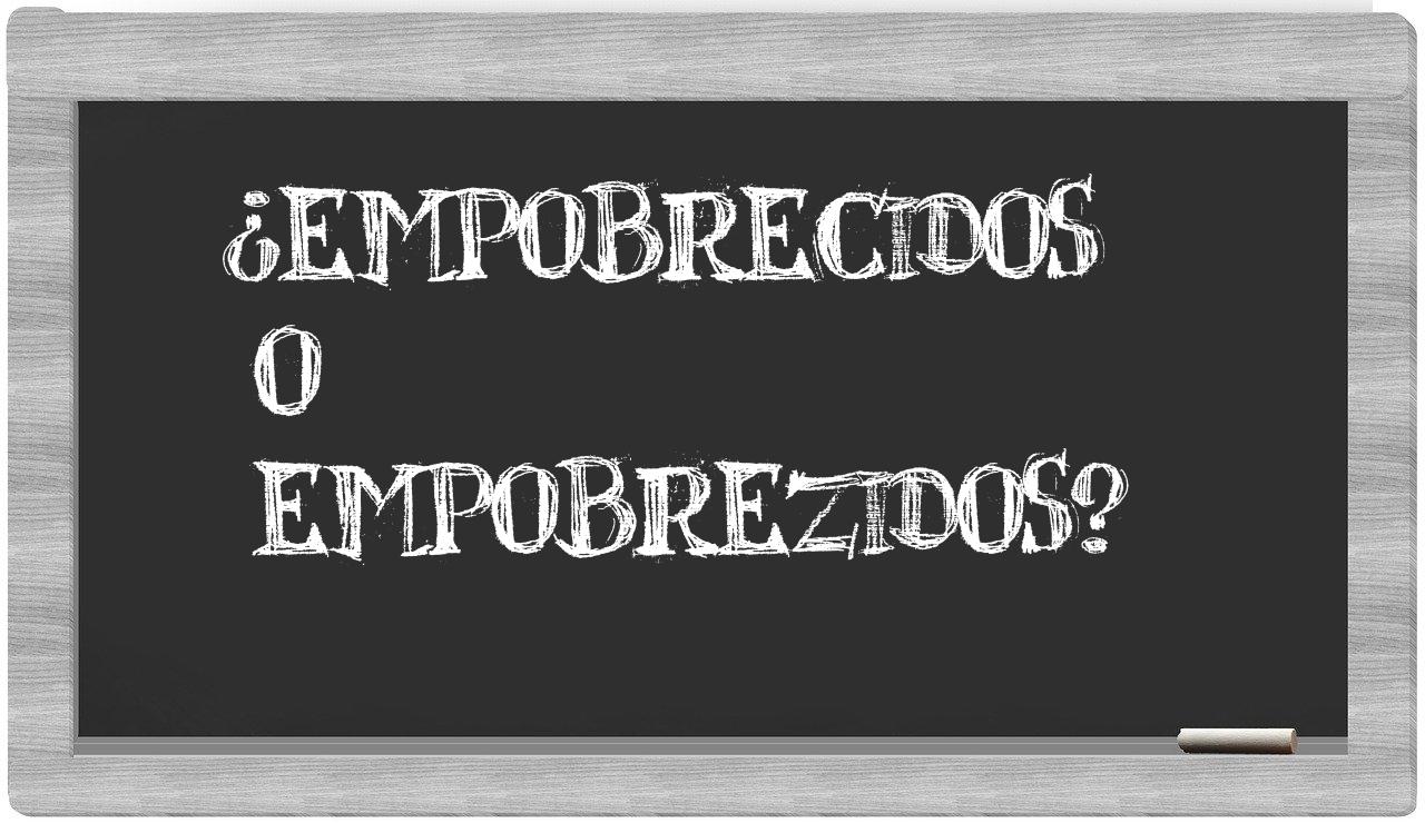 En la situación particular que involucra los términos empobrecidos y empobrezidos, no debería haber ni una sombra de incertidumbre, puesto que únicamente empobrecidos es la opción que se encuentra correctamente formulada. Por otro lado, empobrezidos carece de reconocimiento en el Diccionario de la Real Academia de la Lengua.