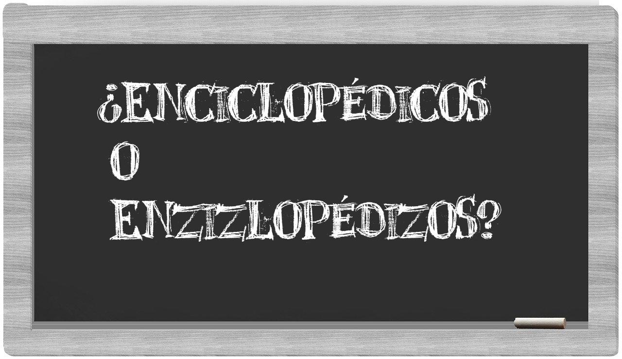 Cuando se presenta la elección entre enciclopédicos y enzizlopédizos, no hay motivo para titubear, puesto que únicamente enciclopédicos se encuentra registrada adecuadamente. Por su parte, enzizlopédizos no figura en el Diccionario de la Real Academia Española.
