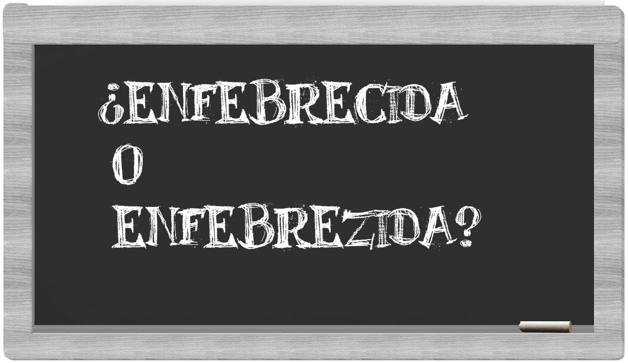 En la situación particular que involucra los términos enfebrecida y enfebrezida, nunca deberías titubear, puesto que únicamente enfebrecida figura de manera adecuada. Por otro lado, enfebrezida es ausente en el Diccionario de la Real Academia Española.