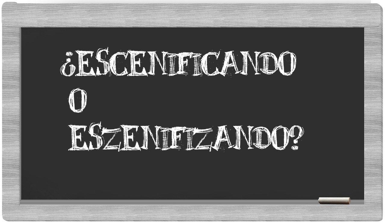 En la situación particular que involucra las palabras escenificando y eszenifizando, no hay motivo para vacilar, puesto que únicamente escenificando es la que se encuentra debidamente registrada. Por otro lado, eszenifizando no figura en el diccionario de la Real Academia Española.