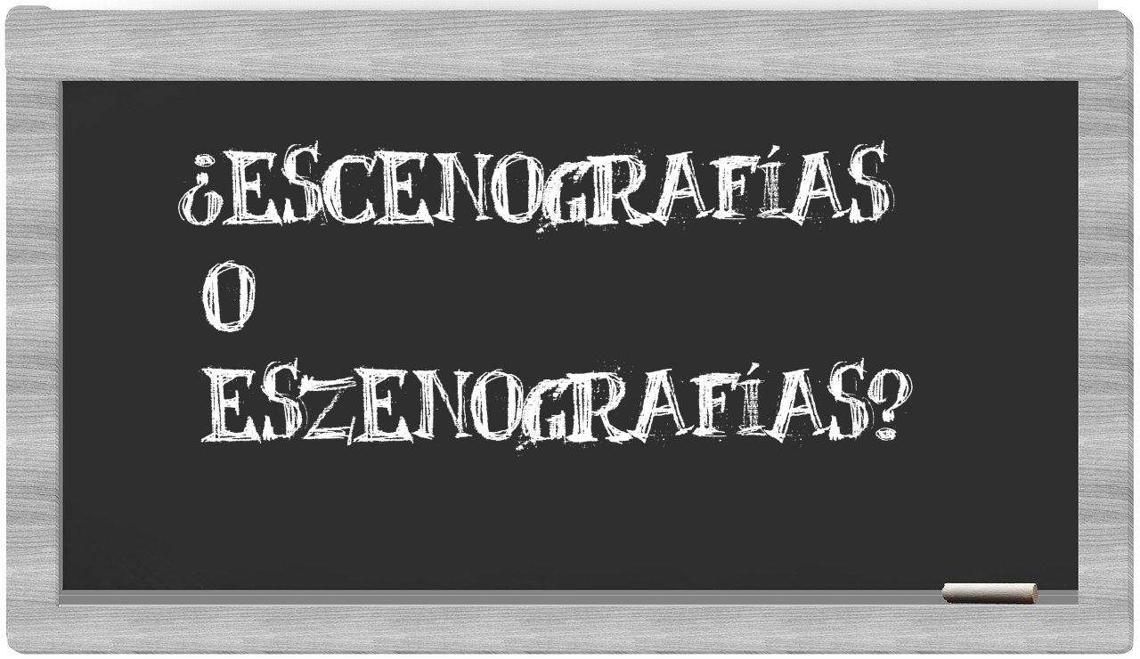 Al analizar la distinción entre escenografías y eszenografías, es crucial que no exista incertidumbre, puesto que únicamente escenografías se encuentra registrada de manera adecuada. Por otro lado, eszenografías carece de reconocimiento en el Diccionario de la Real Academia Española.