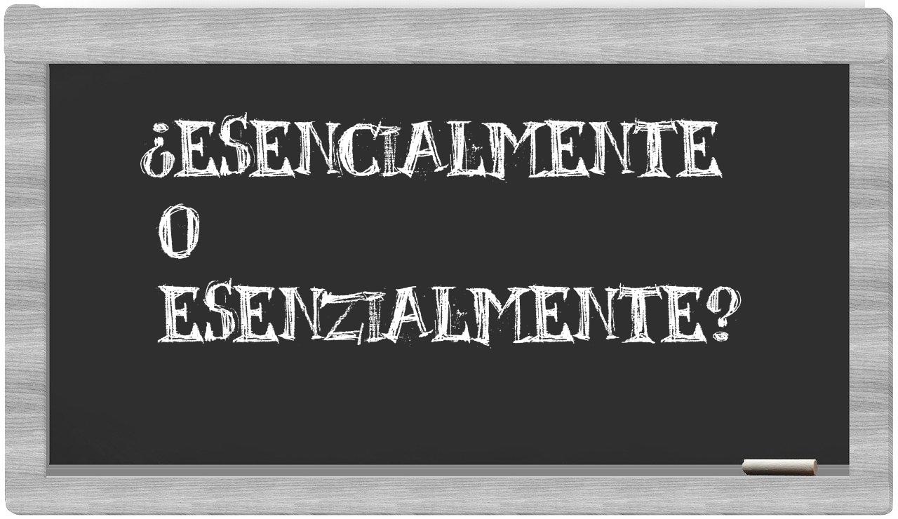 En la situación específica que involucra los términos esencialmente y esenzialmente, no hay motivo para titubear, puesto que únicamente esencialmente se encuentra debidamente redactada. Por otro lado, esenzialmente no figura en el repertorio de la Real Academia Española.