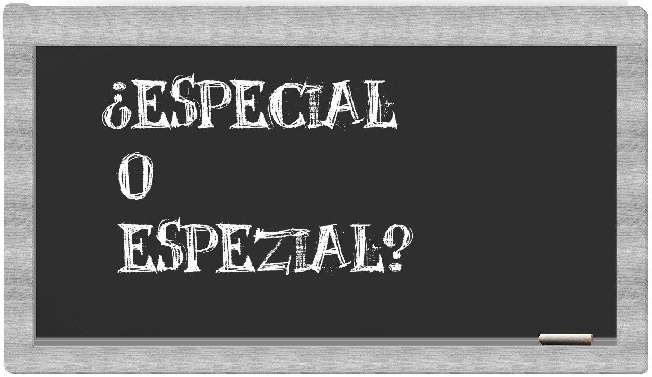 Cuando se presenta la elección entre especial y espezial, es importante no titubear, puesto que únicamente especial es la opción correctamente formulada. Por otra parte, espezial no figura en el Diccionario de la Real Academia Española.