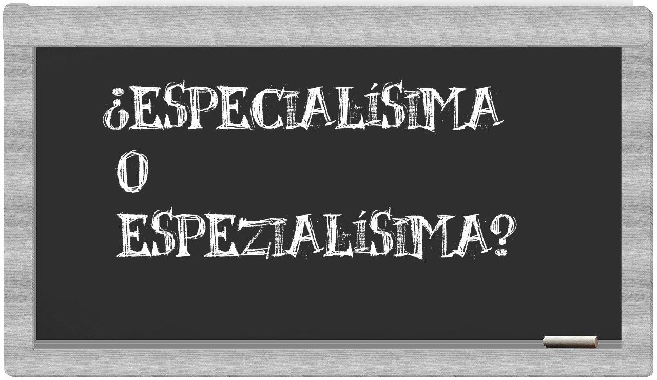 En la situación específica que involucra los términos especialísima y espezialísima, no deberías titubear en ningún momento, puesto que únicamente especialísima se halla debidamente registrada y aceptada. Por otro lado, espezialísima no figura en las páginas del Diccionario de la Real Academia Española.