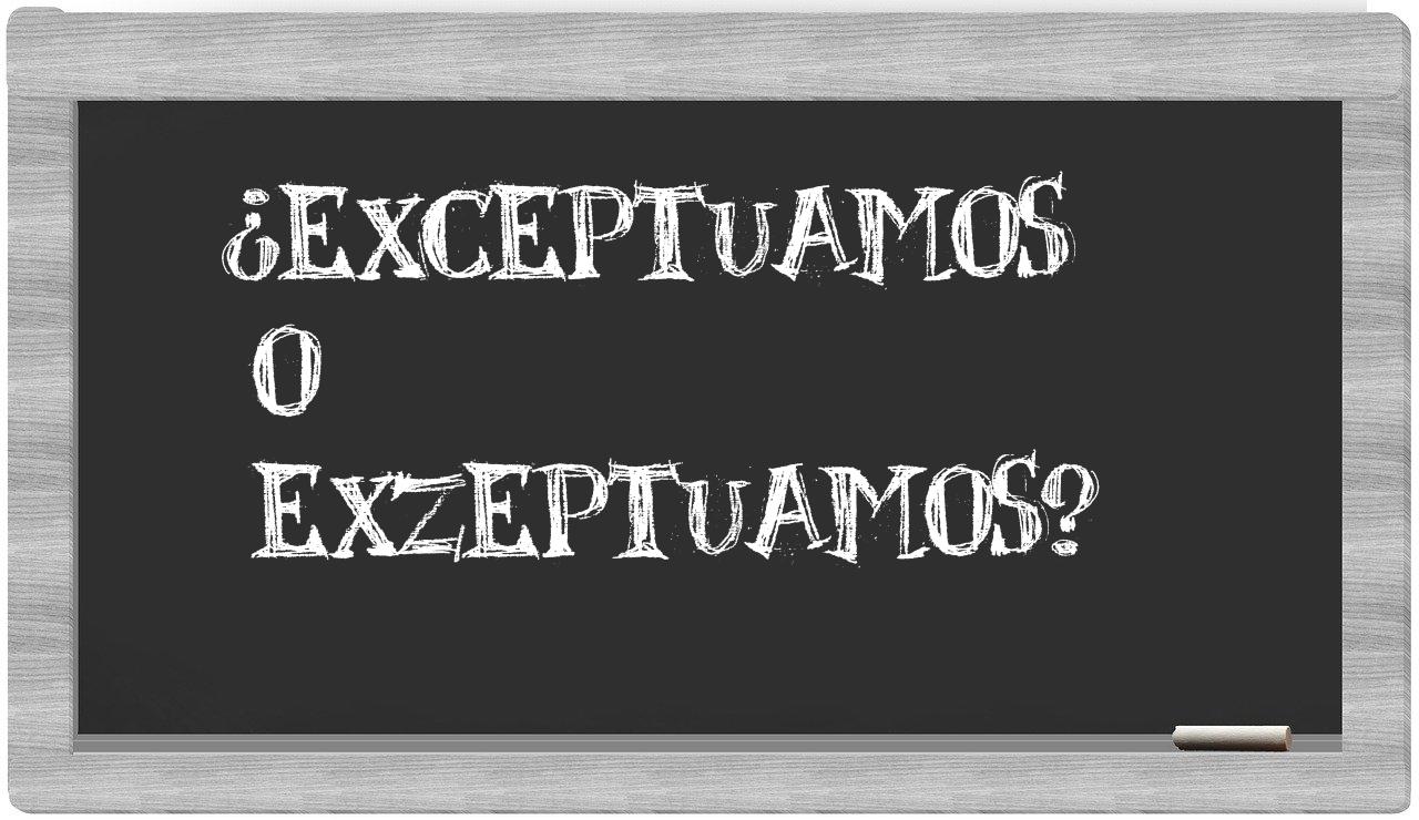 No deberías titubear en la distinción entre exceptuamos y exzeptuamos, puesto que únicamente exceptuamos es la que cumple con la ortografía adecuada; exzeptuamos, lamentablemente, no se encuentra registrada en el prestigioso Diccionario de la Real Academia Española.