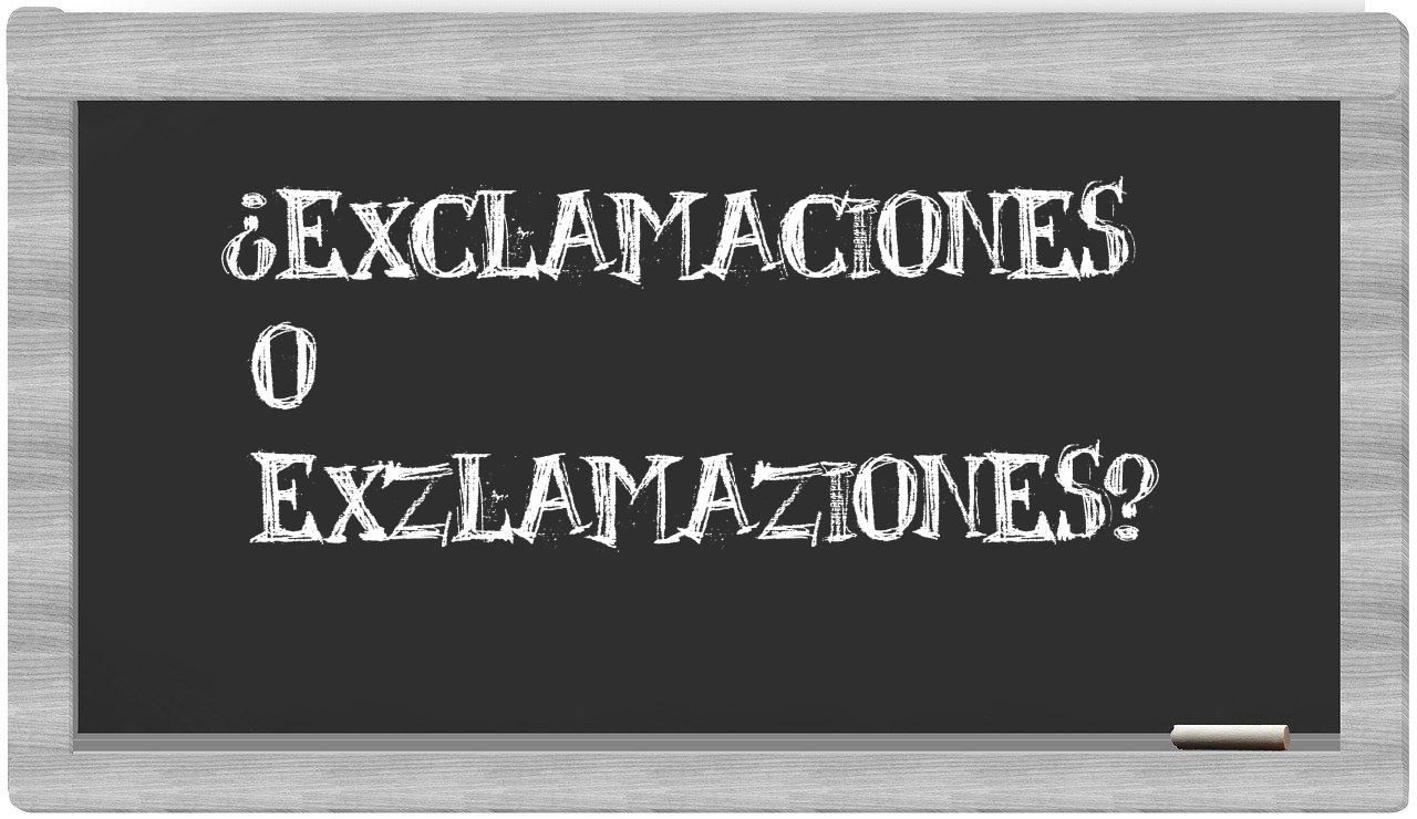 Cuando se trata de elegir entre exclamaciones y exzlamaziones, no hay motivo para la incertidumbre, puesto que únicamente exclamaciones se encuentra debidamente registrada en el Diccionario de la Real Academia Española, mientras que exzlamaziones carece de reconocimiento oficial.