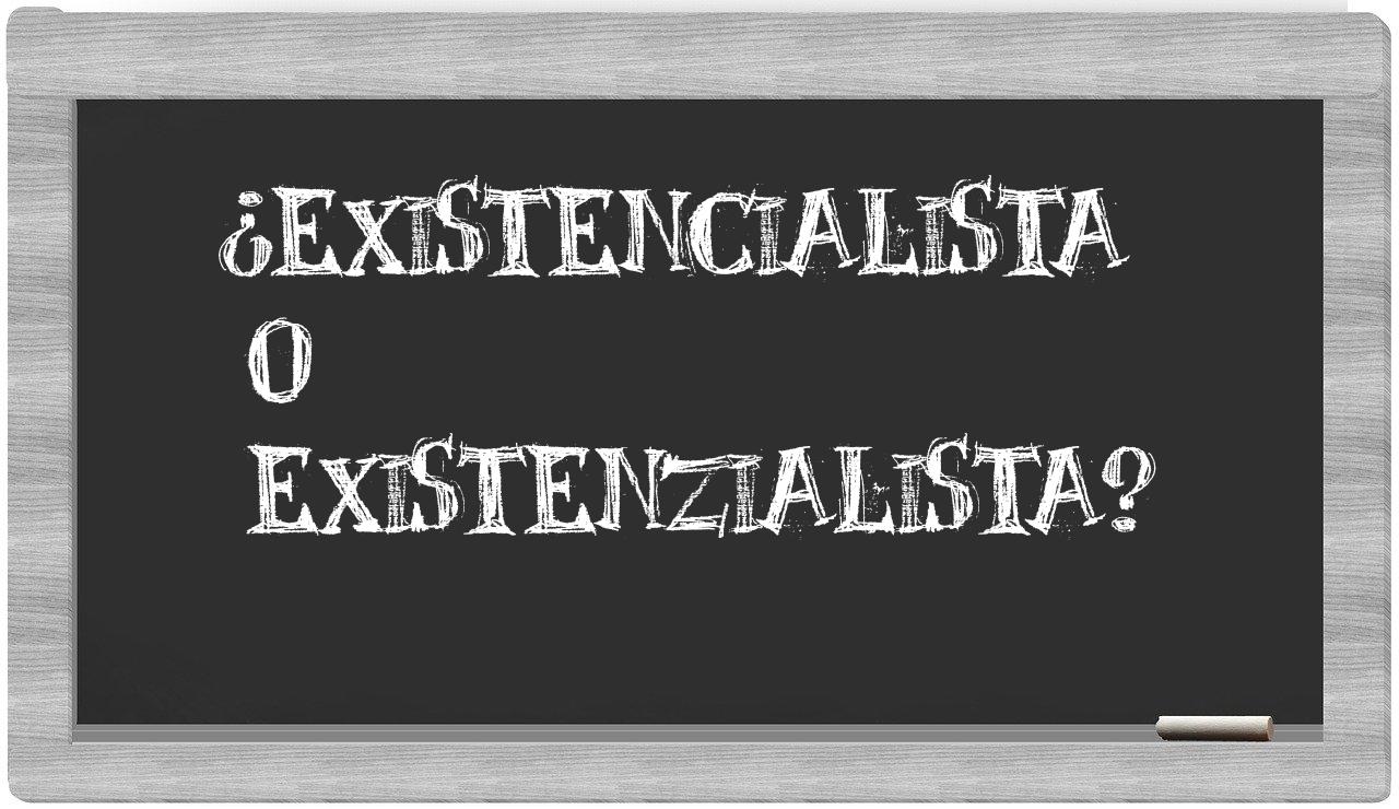 En la situación específica de las palabras existencialista y existenzialista, no deberías titubear, puesto que únicamente existencialista se encuentra correctamente redactada. existenzialista, por otro lado, carece de presencia en el Diccionario de la Real Academia Española.