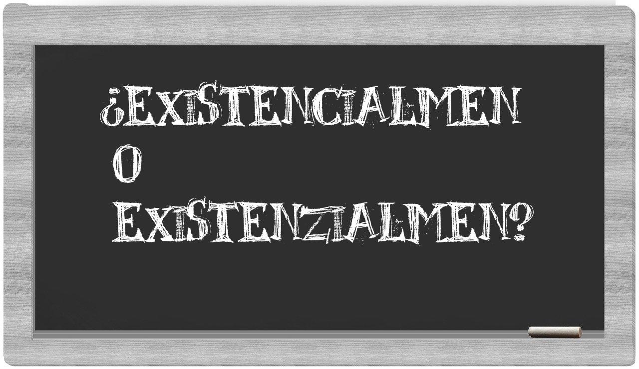 No hay lugar para la incertidumbre cuando se trata de existencialmen y existenzialmen; solo existencialmen es la opción que se encuentra registrada adecuadamente. Por otro lado, existenzialmen es un término que no figura en el prestigioso Diccionario de la Real Academia Española.