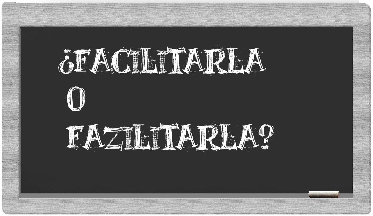 Cuando se presentan las opciones entre facilitarla y fazilitarla, la elección debería ser clara para ti, puesto que únicamente facilitarla se encuentra debidamente registrada en el Diccionario de la Real Academia Española, mientras que fazilitarla no tiene cabida en su contenido.