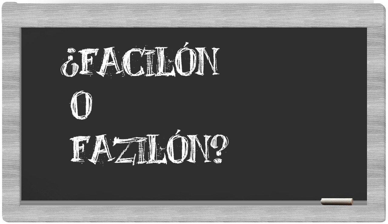Cuando se presenta la disyuntiva entre los términos facilón y fazilón, no hay lugar para la indecisión, puesto que únicamente facilón se encuentra correctamente redactado. Por otro lado, fazilón carece de reconocimiento en el Diccionario de la Real Academia Española.