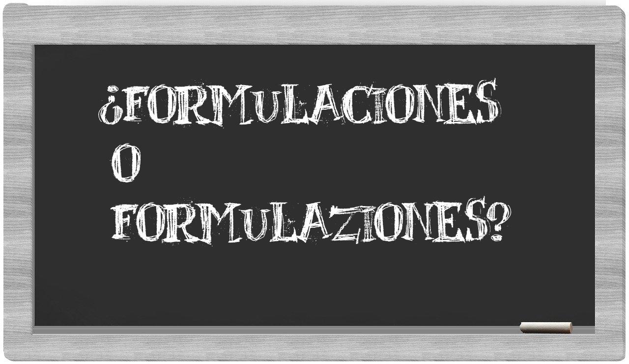 En la situación particular que involucra los términos formulaciones y formulaziones, no debería haber ni una sombra de incertidumbre, puesto que únicamente formulaciones es la opción que se encuentra correctamente formulada. Por otro lado, formulaziones carece de reconocimiento en el Diccionario de la Real Academia de la Lengua.