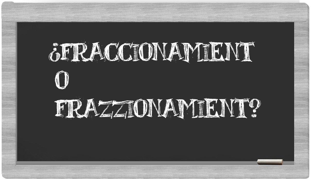 En la situación particular, al enfrentarte a las terminaciones fraccionamient y frazzionamient, la elección debería ser clara, puesto que únicamente la forma fraccionamient es la que se considera correcta. La palabra frazzionamient, por otro lado, no se encuentra registrada en el Diccionario de la Real Academia Española.