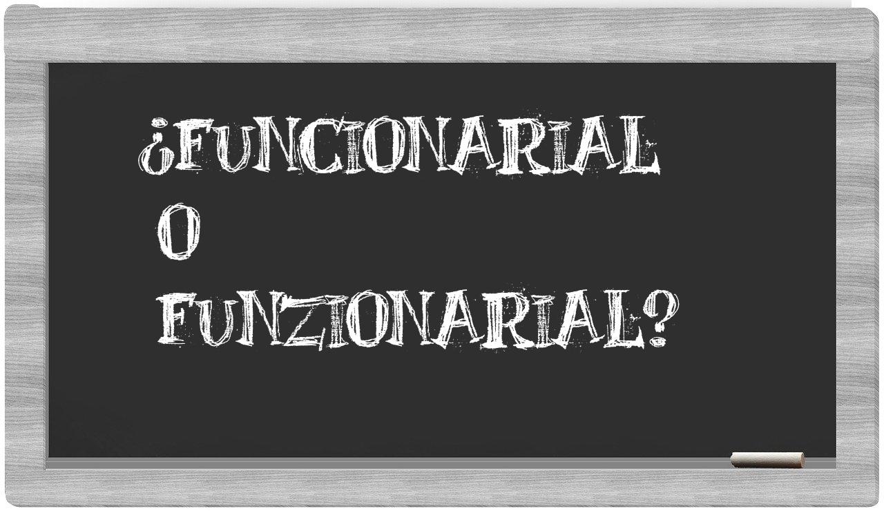 Cuando se confrontan los términos funcionarial y funzionarial, es crucial que no titubees, porque únicamente funcionarial se presenta con la ortografía adecuada. De hecho, funzionarial no figura en el Diccionario de la Real Academia Española.