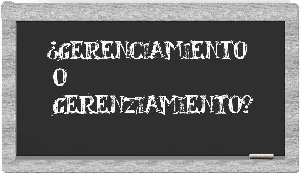No deberías titubear en la distinción entre gerenciamiento y gerenziamiento, puesto que únicamente gerenciamiento es la que cumple con la ortografía adecuada; gerenziamiento, lamentablemente, no se encuentra registrada en el prestigioso Diccionario de la Real Academia Española.