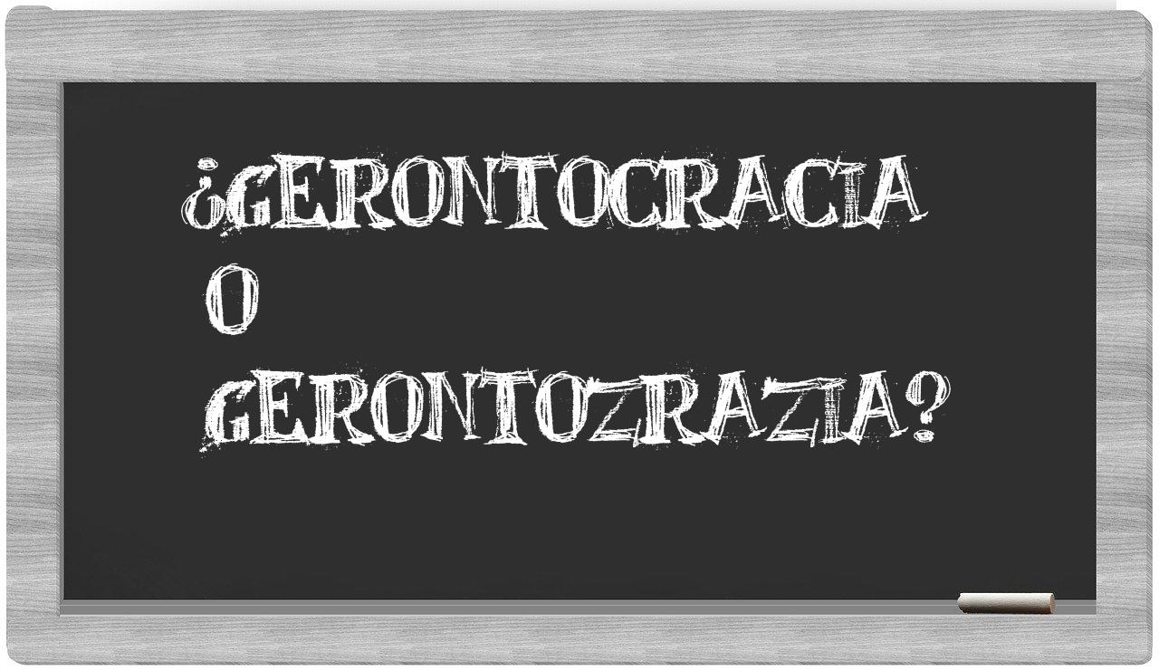 En la situación particular que se plantea entre los términos gerontocracia y gerontozrazia, no deberías tener ninguna incertidumbre, puesto que solo gerontocracia se encuentra correctamente redactada. En cambio, gerontozrazia no figura en el Diccionario de la Real Academia Española.