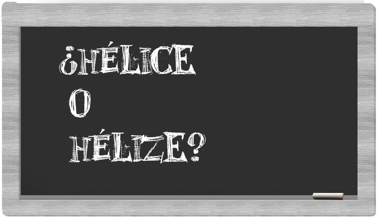 En la situación específica que involucra los términos hélice y hélize, nunca deberías contemplar una incertidumbre, puesto que únicamente hélice se encuentra correctamente redactado. hélize carece de presencia en el léxico del Diccionario de la Real Academia de la Lengua.