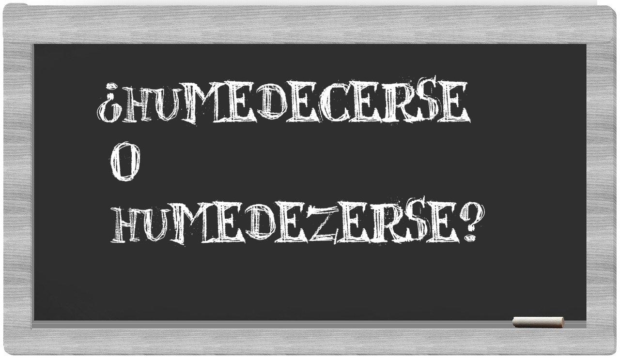 En la situación específica entre los términos humedecerse y humedezerse, no deberías cuestionar tu elección, puesto que únicamente humedecerse se encuentra registrado de manera adecuada. Por otro lado, humedezerse no figura en el Diccionario de la Real Academia Española.