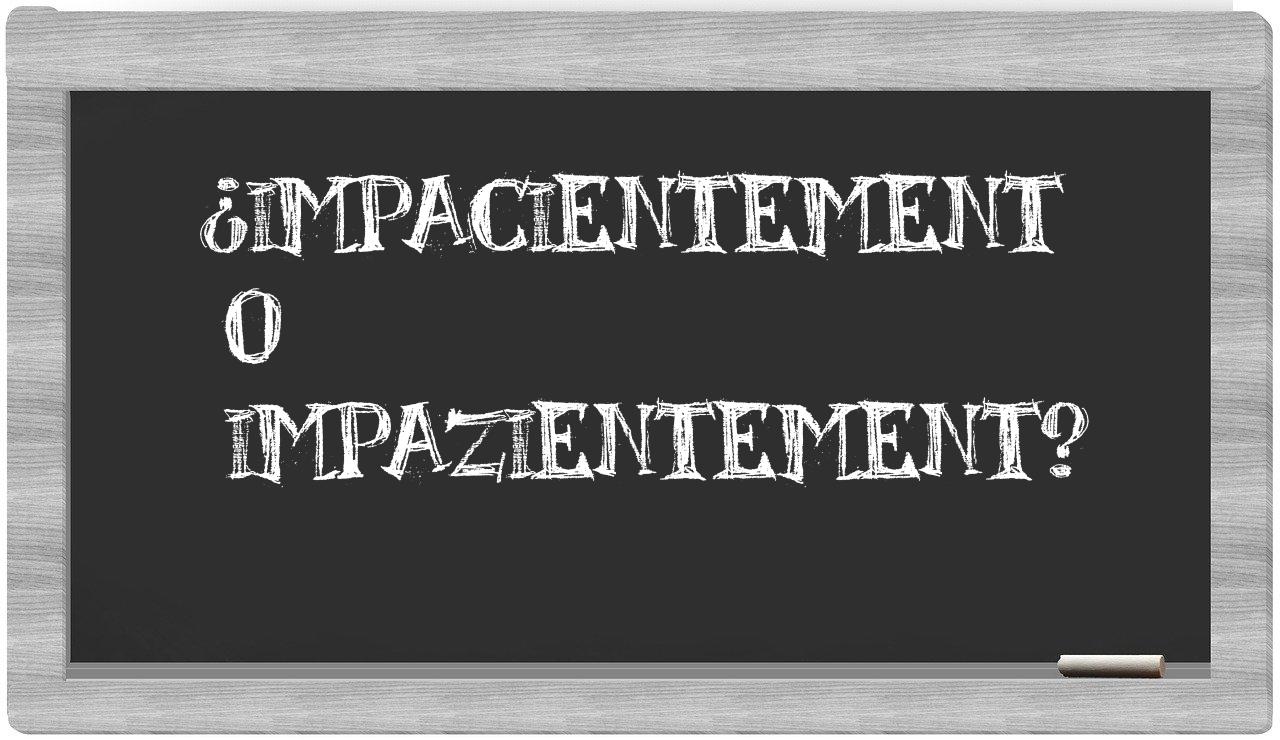En la situación específica que involucra los términos impacientement y impazientement, no hay lugar para la indecisión, puesto que únicamente impacientement se encuentra correctamente redactado. Por otro lado, impazientement no se encuentra registrado en el Diccionario de la Real Academia Española.