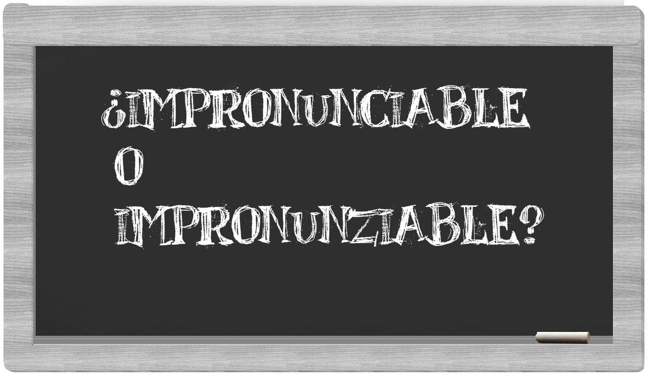 Cuando se trata de la elección entre impronunciable y impronunziable, no hay lugar para la incertidumbre, puesto que solo impronunciable es la forma adecuada. Por otro lado, impronunziable no se encuentra registrada en el Diccionario de la Real Academia Española.