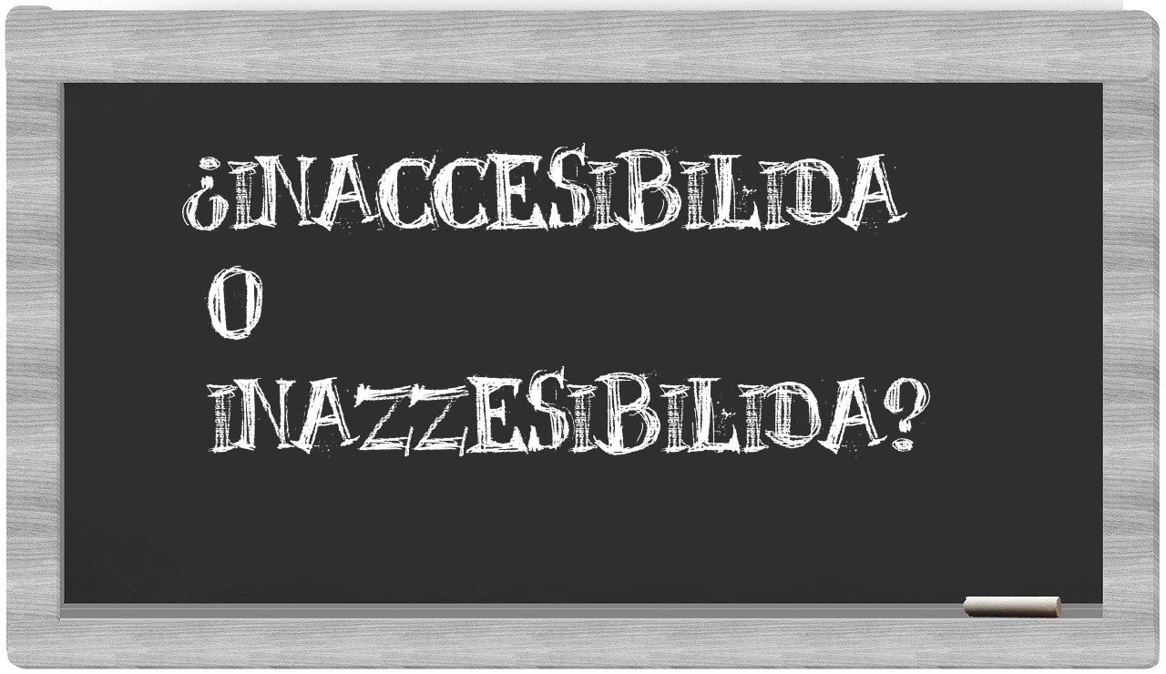Cuando te encuentres ante la elección entre inaccesibilida y inazzesibilida, no hay lugar para la vacilación, pues solo inaccesibilida es la opción que se encuentra adecuadamente registrada, mientras que inazzesibilida no tiene cabida en el Diccionario de la Real Academia Española.