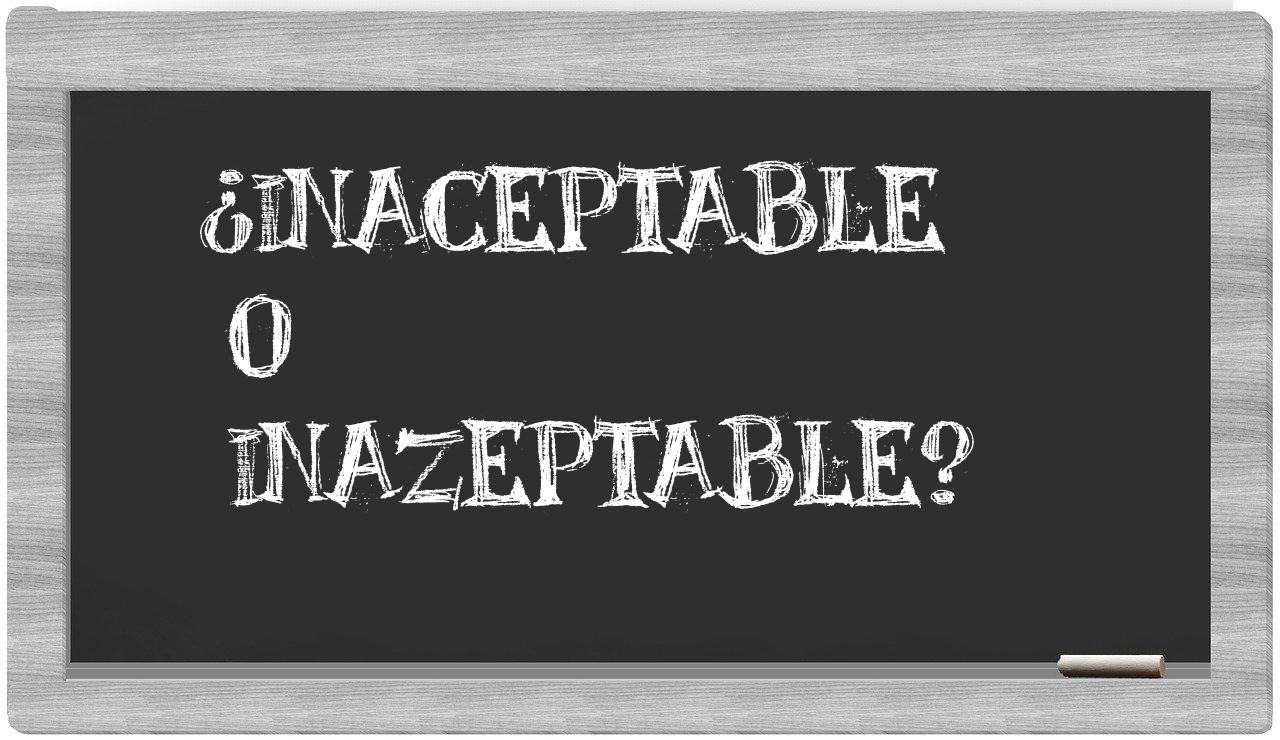 No deberías titubear al elegir entre inaceptable y inazeptable, porque la única opción válida y aceptada es inaceptable, mientras que inazeptable carece de reconocimiento en el Diccionario de la Real Academia Española.