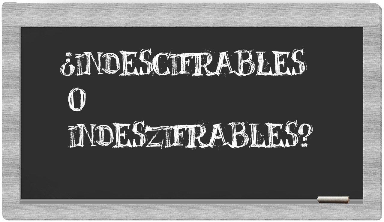 En la situación específica que involucra los términos indescifrables y indeszifrables, nunca deberías contemplar una incertidumbre, puesto que únicamente indescifrables se encuentra correctamente redactado. indeszifrables carece de presencia en el léxico del Diccionario de la Real Academia de la Lengua.