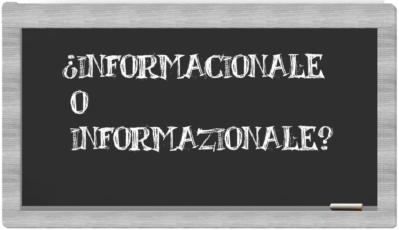 Cuando te enfrentes a la disyuntiva entre informacionale y informazionale, no permitas que la incertidumbre te abrume, porque únicamente informacionale es la forma adecuada. De hecho, informazionale no se encuentra registrada en el Diccionario de la Real Academia de la Lengua.
