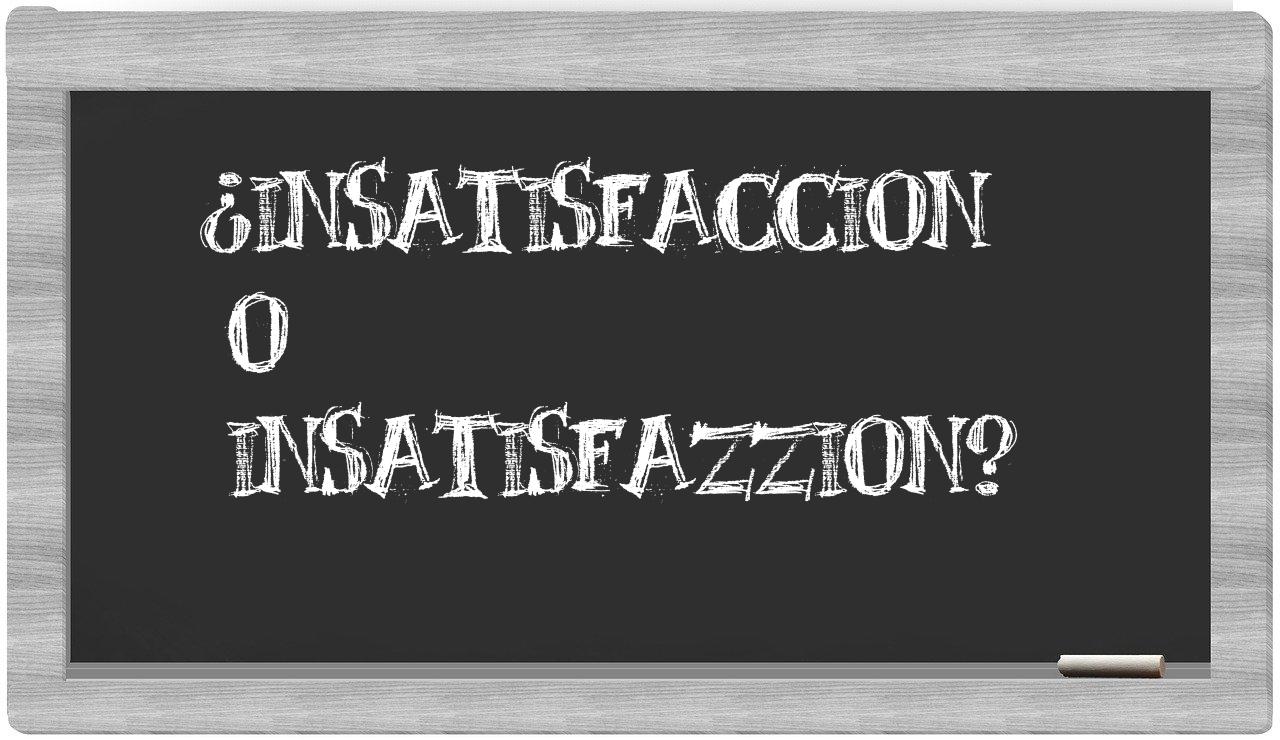 A la hora de elegir entre insatisfaccion y insatisfazzion, es fundamental no vacilar, puesto que únicamente insatisfaccion se encuentra correctamente formulada. Por otra parte, insatisfazzion no figura en el Diccionario de la Real Academia Española.