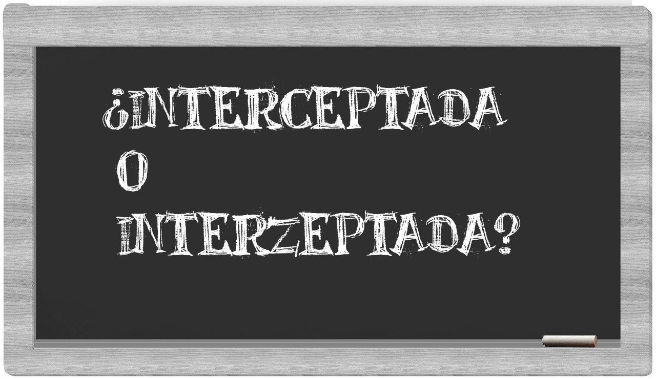 En la situación específica que involucra los términos interceptada y interzeptada, no hay motivo para titubear, puesto que únicamente interceptada se encuentra correctamente redactada. Por otro lado, interzeptada no figura en el Diccionario de la Real Academia Española.