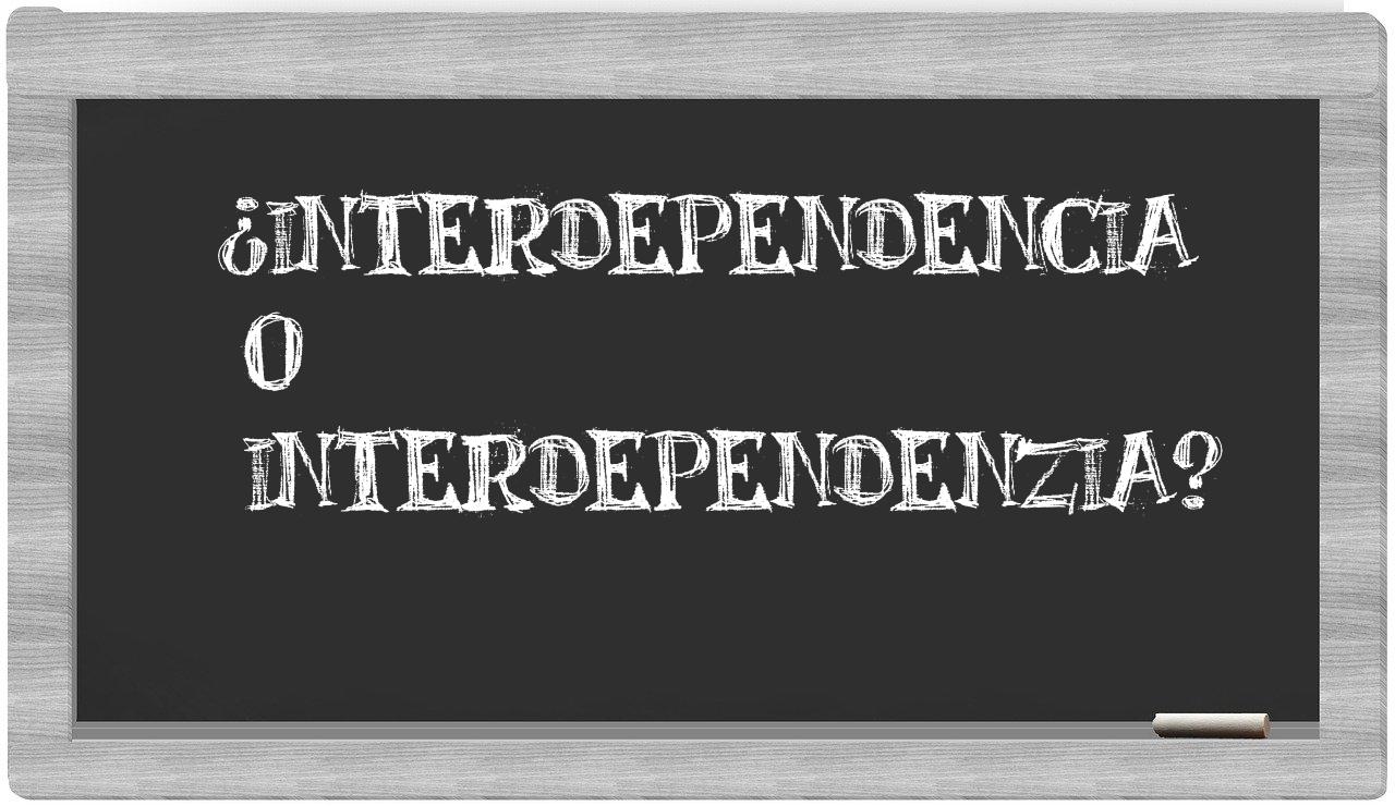 En la particular situación que se presenta entre los términos interdependencia y interdependenzia, no debes experimentar ninguna incertidumbre, puesto que únicamente interdependencia ostenta la ortografía adecuada, mientras que interdependenzia carece de presencia en el Diccionario de la Real Academia Española.