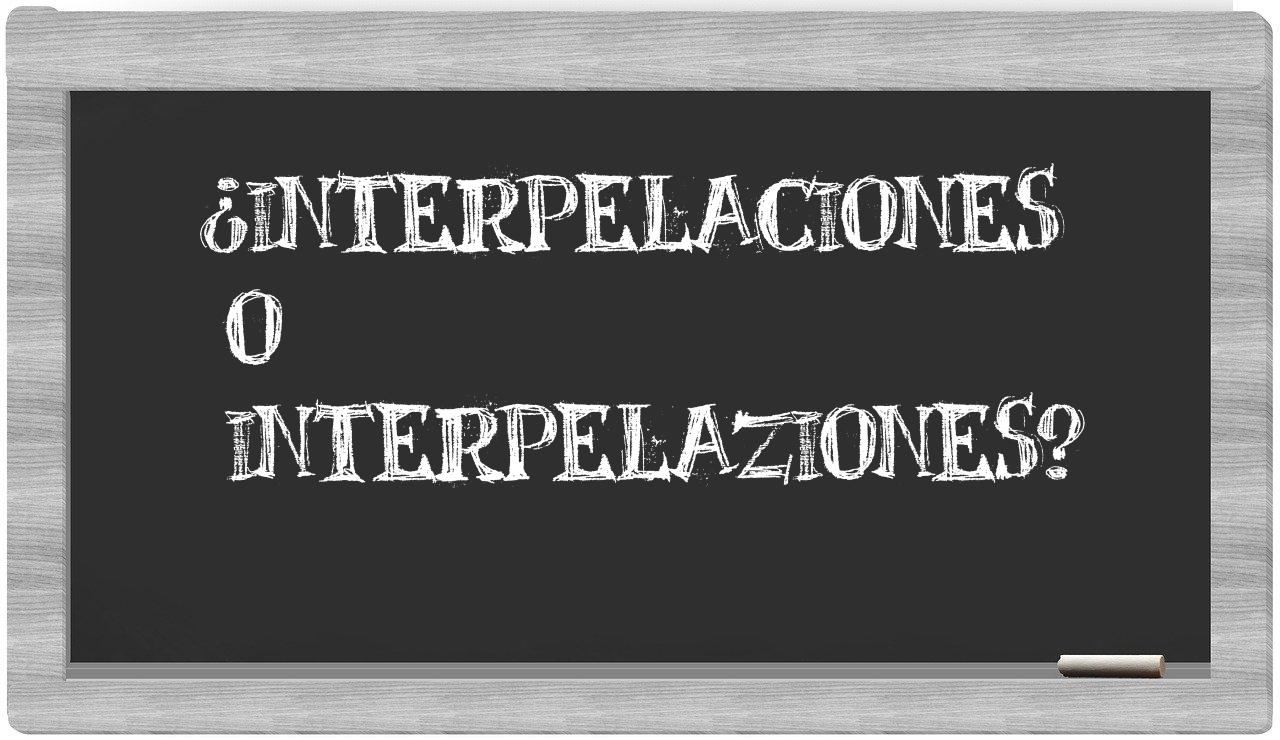 En la situación particular que se presenta entre los términos interpelaciones y interpelaziones, no deberías titubear en tu elección, puesto que únicamente interpelaciones se encuentra debidamente formada y reconocida, mientras que interpelaziones no figura en el Diccionario de la Real Academia Española.
