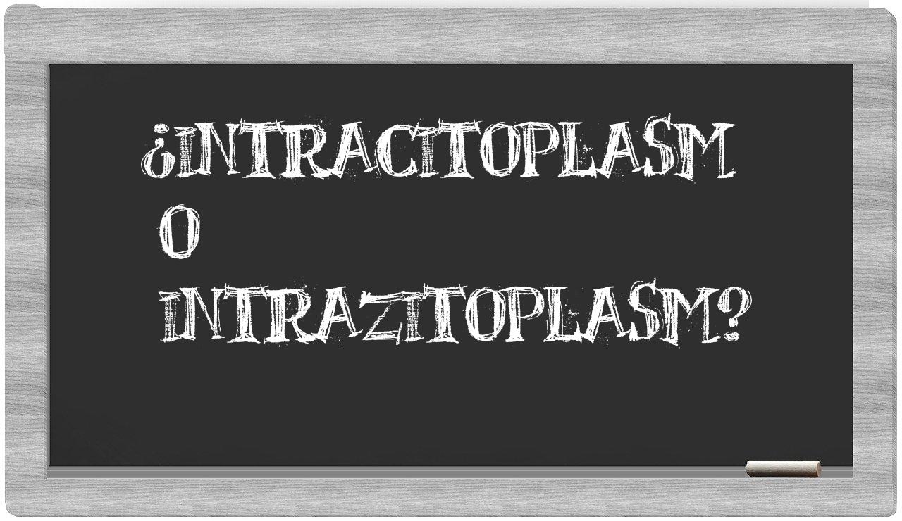 Cuando se presenta la disyuntiva entre intracitoplasm y intrazitoplasm, es fundamental que no vaciles, puesto que tan solo intracitoplasm es la opción correcta según las normas del idioma, mientras que intrazitoplasm no figura en el prestigioso Diccionario de la Real Academia de la Lengua.