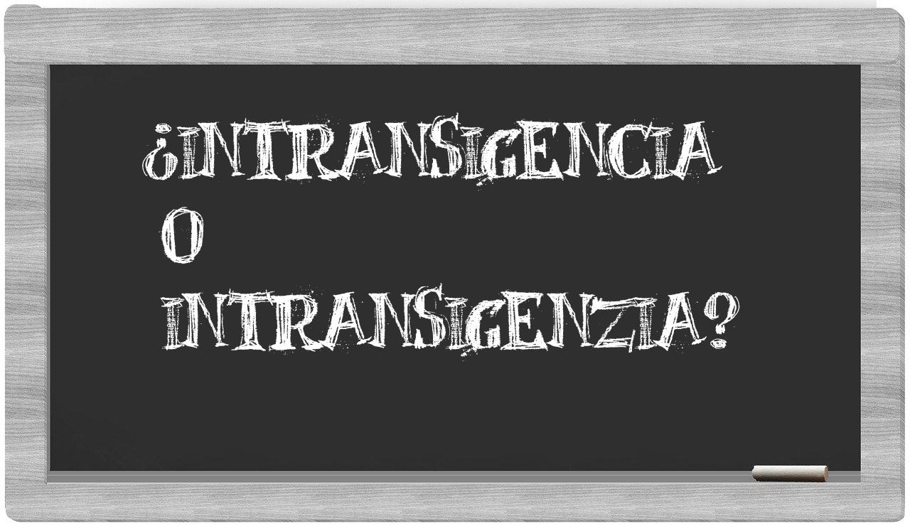 Cuando te enfrentes a las palabras intransigencia y intransigenzia, no vaciles en tu elección, puesto que únicamente intransigencia es la que se encuentra debidamente registrada; en cambio, intransigenzia no forma parte del léxico de la Real Academia Española.