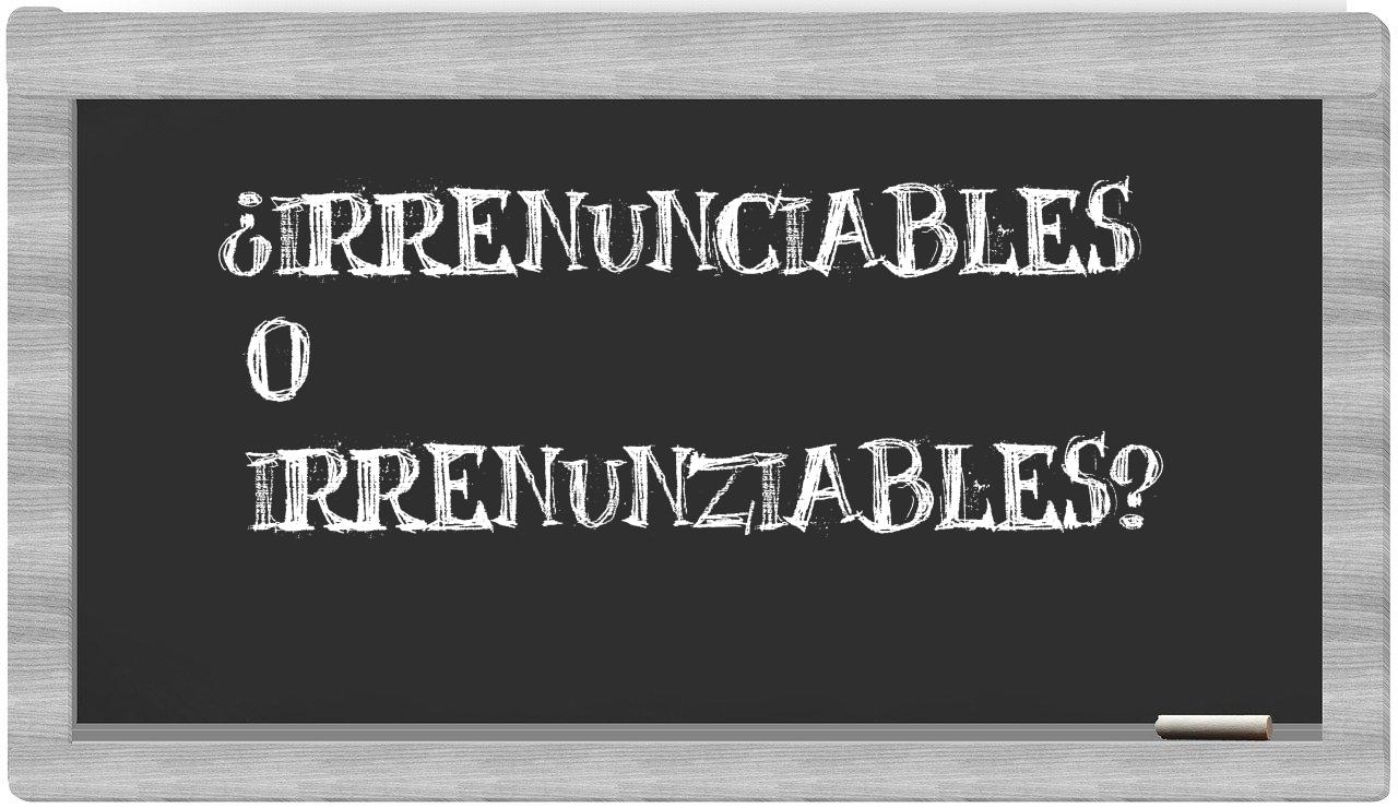 En la situación particular que se plantea entre los términos irrenunciables y irrenunziables, no deberías tener ninguna incertidumbre, puesto que solo irrenunciables se encuentra correctamente redactada. En cambio, irrenunziables no figura en el Diccionario de la Real Academia Española.